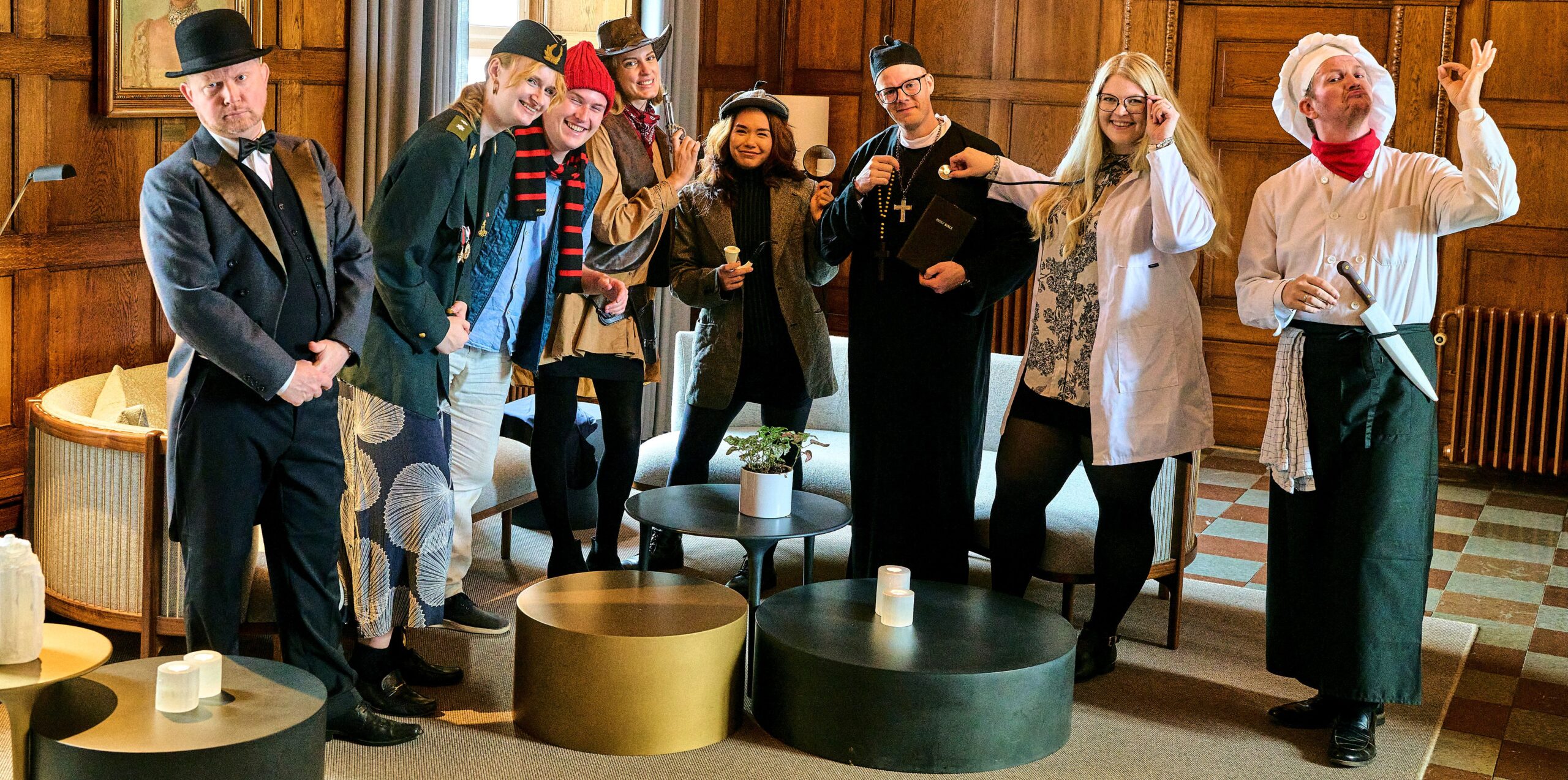 Vi arbejder med den røde tråd, der binder eventen sammen. Vi bruger således tema, gennemarbejdede aktiviteter, scenografi og skuespil, som gør eventen levende og spændende, og giver plads til at deltagerne kan lege med, uanset om anledningen er til sjov eller udvikling.